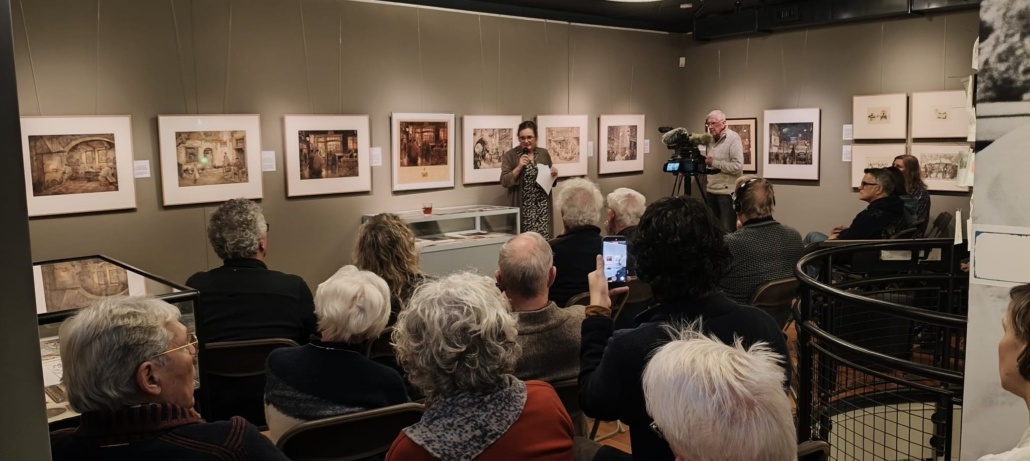 Daarnaast hebben we, mede dankzij de giften van onze donateurs, meerdere aansprekende aquarellen kunnen aankopen. Bijvoorbeeld de laatste plaat die Pieck maakte voor de bijzondere verjaardagskalender van Philips. Het leuke is dat het straatbeeld echt klopt met de wereld van rond 1950, maar de stijl is onmiskenbaar van Anton Pieck.
