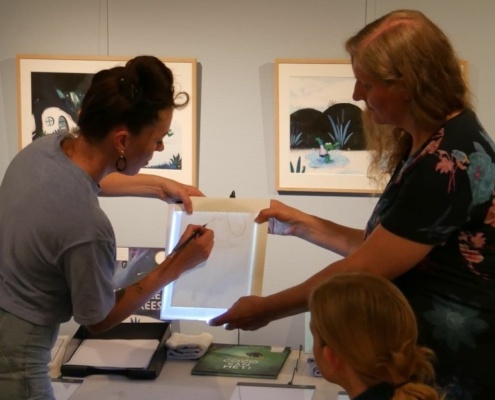 Ze gaf de deelnemers uitleg over haar werkproces en begeleide de deelnemers in het maken van hun eigen illustratie.