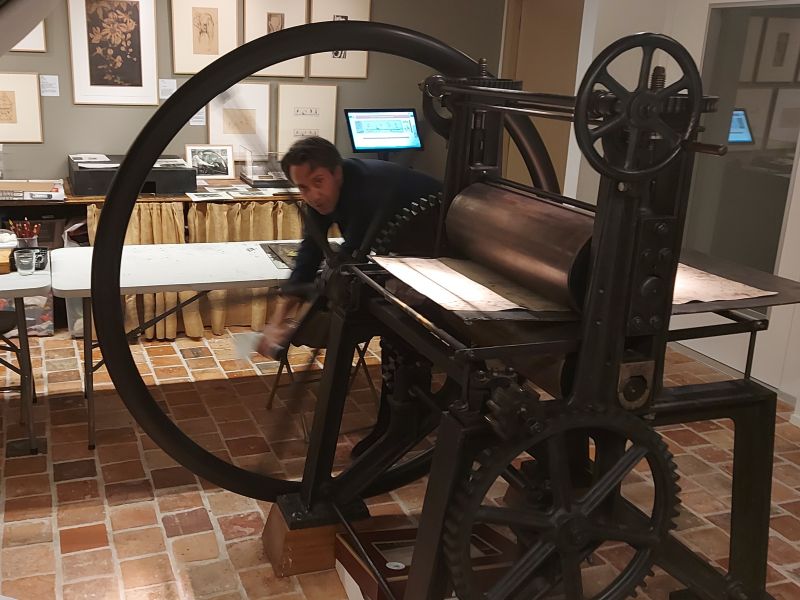 De dag begon met een boeiende introductie over de geschiedenis en techniek van het etsen. Daarbij werd opnieuw gebruik gemaakt van Piecks originele etspers, die altijd in het museum te bewonderen is, maar nu in bedrijf gezien en gebruikt kon worden. Het werken met deze historische pers gaf de deelnemers een bijzondere ervaring die het verleden tastbaar maakt.